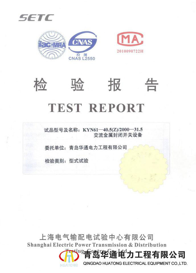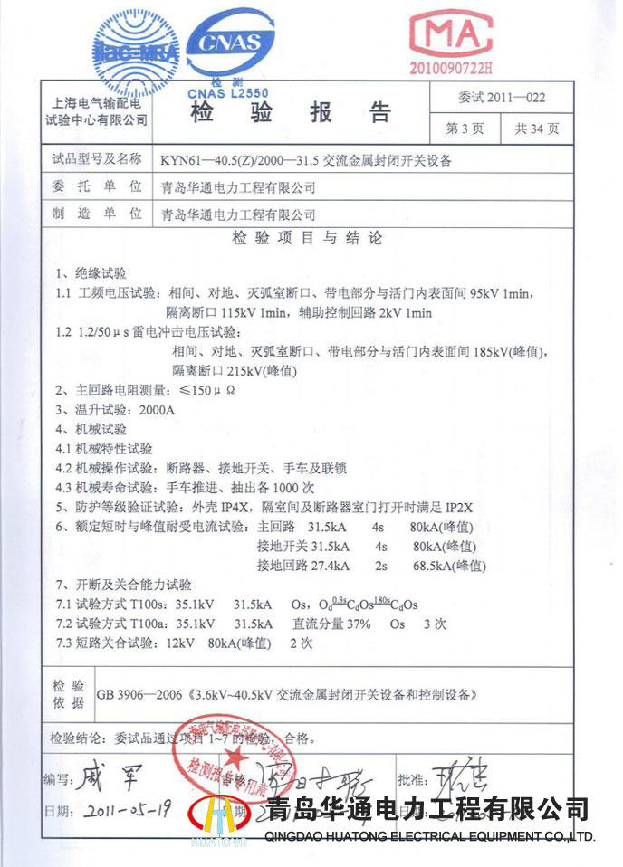 KYN28A-12高壓開關柜型式試驗報告