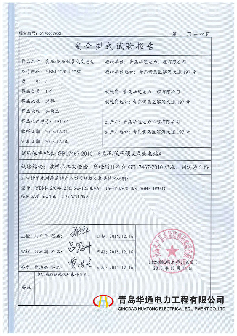 MNS低壓成套開關(guān)設(shè)備型式試驗報告