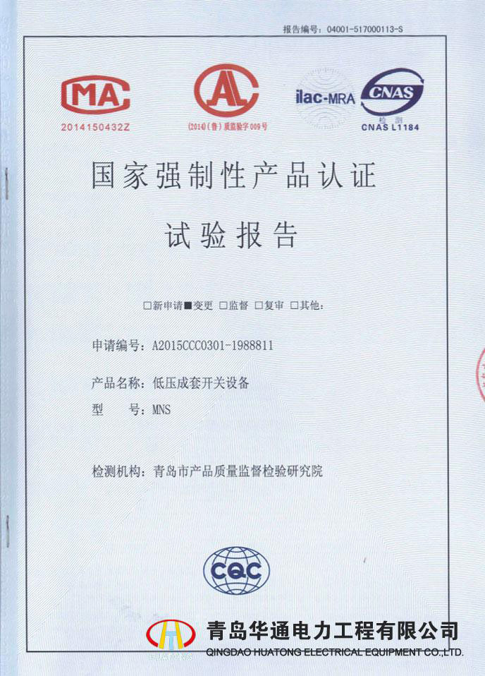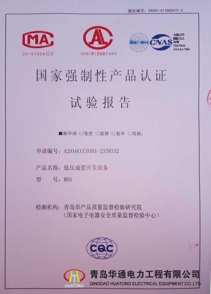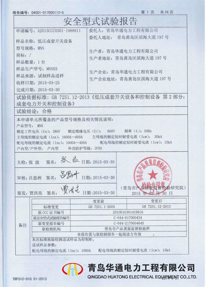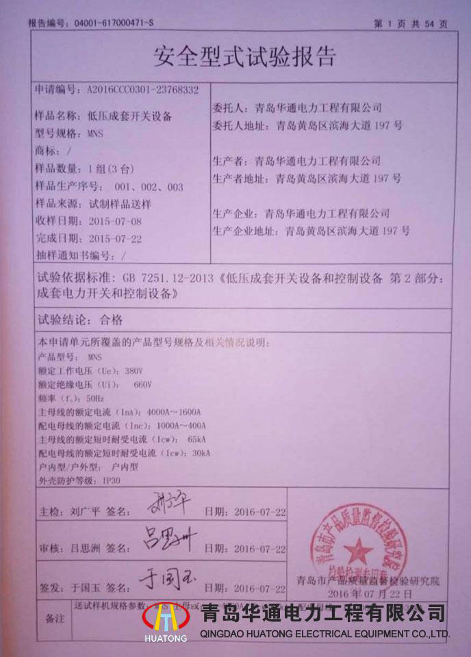 GCK低壓成套開關(guān)設(shè)備檢驗報告