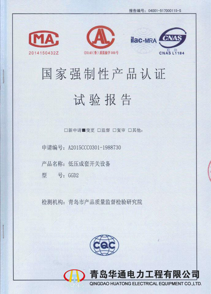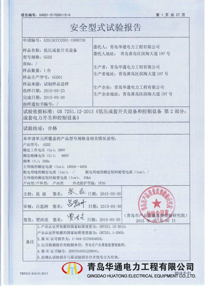 GCK低壓成套開關(guān)設(shè)備檢驗報告