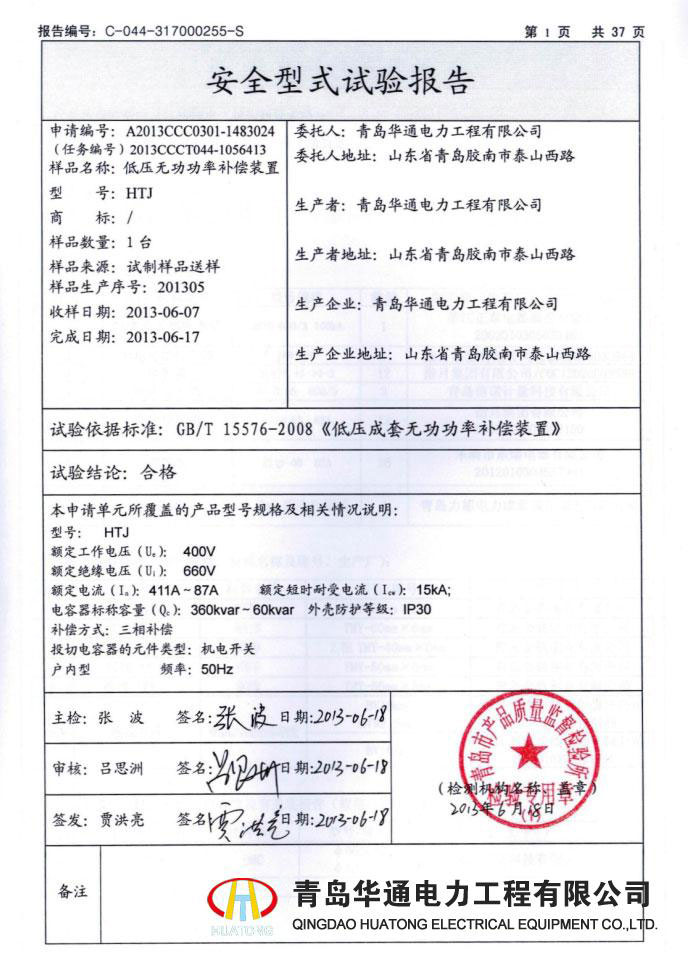 JP低壓綜合配電柜檢驗(yàn)報(bào)告